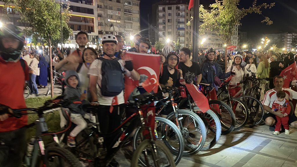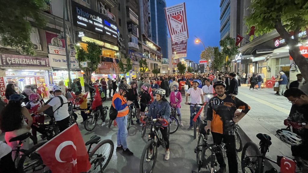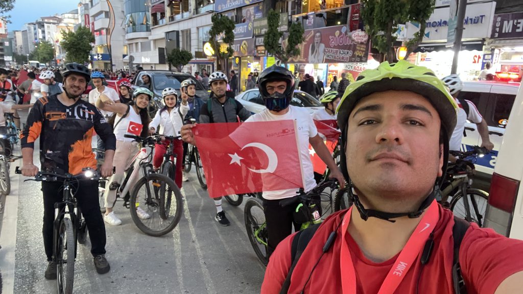 Akşam saatlerinde Elazığ’ın kalbinde buluşarak, 100 metre uzunluğundaki Türk bayrağını bisikletlerimizle taşıdık. Bu tarihi simgeyle birlikte, sokaklarda Atatürk’e olan minnettarlığımızı ve bisikletin ne kadar güçlü bir farkındalık aracı olduğunu gösterdik.