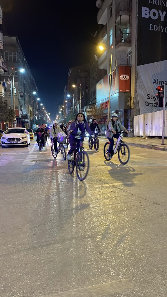 Elazığ Belediyesi karşısında başlayan etkinlikte, 25 bisiklet sever bir araya gelerek farkındalık yaratmak için pedal çevirdi. Tur güzergahı boyunca şehrin en işlek caddelerinden geçilerek kadın haklarına ve eşitliğe vurgu yapıldı. Renkli görüntülere sahne olan etkinlikte, katılımcılar bisikletleriyle şehir merkezinde farkındalık oluştururken, vatandaşlardan da destek gördü.